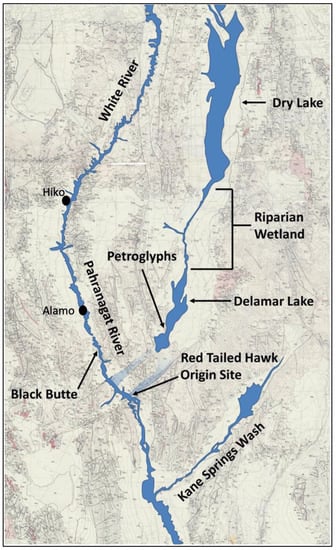 - Fowler, C. What’s In a Name? Some Southern Paiute Names for Mojave Desert Springs as Keys to Environmental Perception. In Conference Proceedings: Spring-Fed Wetlands: Important Scientific and Cultural Resources of the Intermountain Region, May 7–9, 2002; Sada, W., Sharpe, S.E., Eds.; Desert Research Institute: Reno, NV, USA, 2004. [Google Scholar]