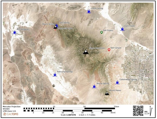 - Stoffle, R.; Chmara-Huff, F.; Van Vlack, K.; Toupal, R. Puha Flows from It: The Cultural Landscape Study of the Spring Mountains; Bureau of Applied Research in Anthropology, University of Arizona: Tucson, AZ, USA, 2004. [Google Scholar]