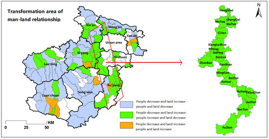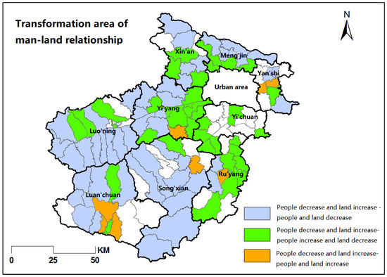 4.3.1. Population Decrease and Land Increase—Population Increase and Land Decrease