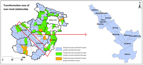 4.3.2. Population Decrease and Land Increase—Population and Land Decrease Area