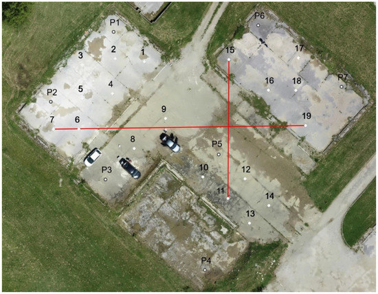 To obtain the highest possible statistical accuracy of the GCPs and CPs, the point coordinates were adjusted by the least-squares method, the Gauss–Markov linear model. The Gauss–Markov adjustment model is based on the idea that the unknown parameters (in our study only horizontal coordinates E, N) are estimated with maximum probability. Three independent network adjustments were carried out in the JAG3D (Java Applied Geodesy 3D) software package. Terrestrial observations: distances and angles collected using the polar method and datum points; coordinates measured by a GNSS RTK method in a micro-network estimated the statistical best-fit solution for the coordinates. The estimated standard deviation of GCPs and CPs coordinates is in a range of a few millimetres. If the accuracy of the reference point coordinates is, for example, better by a factor of 5–10 than the photogrammetric point determination and there are no inconsistencies in reference point coordinates, then reference point coordinates can be introduced as error-free. Logically, this approach leads to an error-free definition of the datum, with bundle adjustment input being zero standard deviation measurements [25].