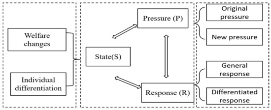 The PSR (Pressure-State-Response) model was proposed by the Organization for Economic Cooperation and Development (OECD) to evaluate environmental systems. By analyzing the causal relationship between Pressure (P) and State (S), this model describes and explains the causes, performance, and measures of research issues, and responds to these issues through government decision-making and public participation to change the current state [38].