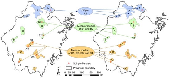 - Xu, S.; Zhao, Y.; Shi, X.; Yu, D.; Li, C.; Wang, S.; Tan, M.; Sun, W. Map scale effects of soil databases on modeling organic carbon dynamics for paddy soils of China. Catena 2013, 104, 67–76. [Google Scholar] [CrossRef]