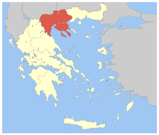 Among the thirteen Greek regions, the region of Central Macedonia is the one with the highest primary sector (Figure 1). According to the Hellenic Statistical Authority, the primary sector of the region corresponds to 22.6% of the total value of production in the country. The region includes seven regional units with different crop plans [63].