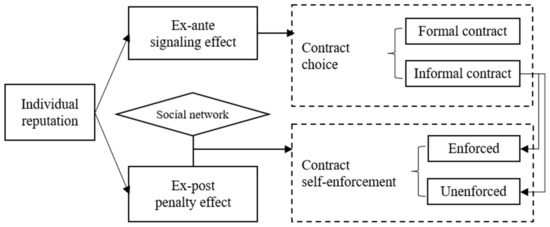 Theoretical framework of reputation effect on contract choice and self-enforcement.