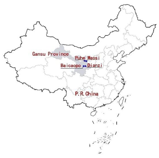 The locations of the villages of Baicaopo and Dianzi are shown in Figure 1. Baicaopo and Dianzi villages are located in the northwestern part of Lingtai County, Pingliang City, Gansu Province, to the east of Xitun Town. Baicaopo Village is adjacent to Dianzi Village to the east, Qiaozi Village and Xitun Forest Farm to the west, and Guoyang Village and Xiaocun Village to the north. The No. 202 provincial road passes through the northern parts of the two villages, making travel relatively convenient. The industries in these two villages are dominated by primary industry. The leading industries in Baicaopo Village mainly include grain planting, wormwood planting, fruit production, and the livestock industry. The secondary industry in the village includes cattle material processing factories, foam mesh factories, Baicaopo brick factories, and wood flooring factories. The leading industries in Dianzi Village mainly include forestry and fruit production, grain planting, and animal husbandry. The income of the villagers in these two villages is mainly from the secondary industry. In these two villages, forestry and fruit production are poverty alleviation industries. In addition, Dianzi Village contains the famous Shuanghouzi ancient tomb, which is a county-level cultural relic protection unit. These two villages have a good biophysical environment [56]. There are a large number of birds, including cuckoos and pheasants. They have natural advantages and resources that are beneficial to the development of tourism [56].