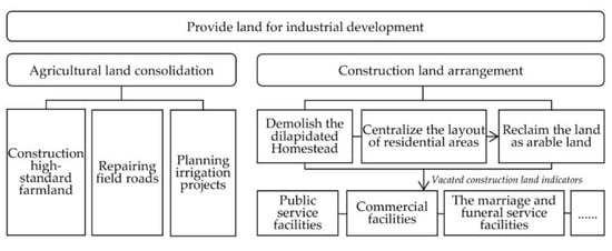 Schematic diagram of providing land for industrial development through agricultural land consolidation and construction land arrangement.