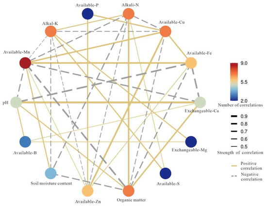 The correlation network of the soil effective state in the Tainong mango orchards.