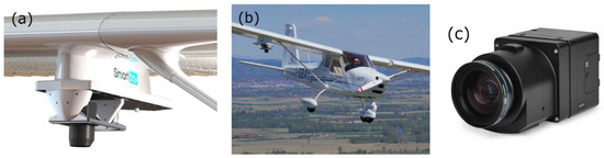(a) SmartBay© platform; (b) Tecnam P92 JS aerial; (c) Phase-One iXM-RS150F RGB camera.