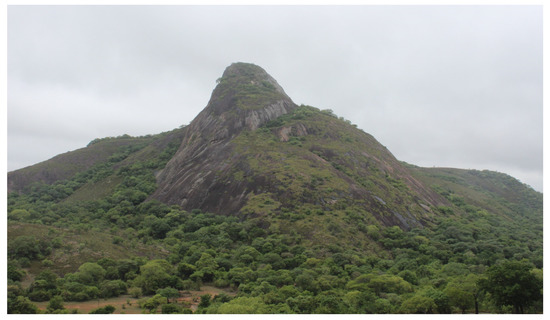 It is plausible that the Zimbabwe people envisioned some natural landmarks such as hills, caves, rivers, and mountains as emblems of group identity, ancestral abodes, and ritual spaces that connected them with the spirit world. A reading of the oral traditions from the 18th century shows that various portions of the Mberengwa landscape were associated and populated with several Shona polities, such as the Nyamhondo, Negove, and Romwe, whose boundaries were demarcated by natural landmarks [31,35,36,37,38,39,63,66,91]. Nearly all these eponymous polities were led by generations of chiefs emerging from their founding lineages, whose legitimacy to socio-political power was buttressed by custodial rights to control territories (nyika) under their jurisdiction as the first comers [31,63,66]. Part of their chieftaincy duties involved redistributing land to their subjects/latecomers for settlement use and crop cultivation; however, losing land control was synonymous with losing socio-political power [63]. Originally, land within each polity belonged to the royal ancestry (mhondoro)—spirits of the deceased former chiefs [66]. These were regarded as the spiritual guardians of the land, and they were responsible for the fertility of the land [66]. Mhondoro were propitiated at the polity level and relayed the petitions to the Mwari, creator of mankind (Musikavanhu), who provided the rains. As commonly practiced in Shona divinity, the Zimbabwe people may have often carried out rain imploring rituals popularly known as mukwerera to ensure agricultural prosperity [79,84,85,132]. Mukwerera might have been annually held before the beginning of the wet season, and it was presided over by masvikiro (spirit mediums) [66]. Consequently, the masvikiro worked with chiefs and other community leaders to ensure that everything was organized following the laws of the land to avoid shangwa. Such an exercise usually prompts the mistaken belief that chiefs and village leaders were ‘rainmakers’ who had the agency to withhold or bring forth rain (i.e., [21,41,63,101,108,133]). The actual process of rain imploring took place at various sites, from settlements to the woodlands, caves, or hills, depending on the area. For instance, the Romwe of the Chingoma polity who occupied the area drained by the Mundi and Mwenezi Rivers on the western side of Mberengwa around the early 17th century are renowned to have used Imbahuru hill (Figure 11) as their shrine for rain imploring ceremonies [63,66,93]. In fact, most of the oral traditions collected by Zachrisson [63] emphasized the influence of Imbahuru as a rain imploring center to have paralleled that of Matonjeni in the Matopos, where chiefs sent emissaries (manyusa) to consult Mwari/Musikavanhu as a last resort [66,79,85,134,135].