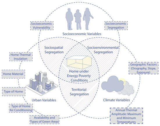 Figure 10. Diagram of interactions between the different areas of socioeconomic, urban, and climatic variables to explain the situation of housing in energy poverty.