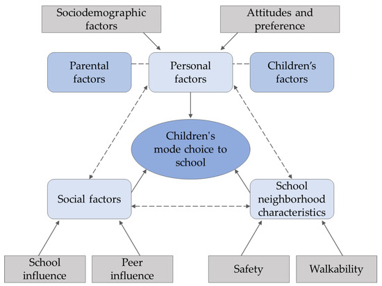 Conceptual framework of the study: factors influencing mode choice. (Source: modified by the authors based on the framework created by [58].)