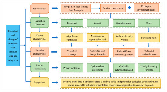 Liang, J.; Zheng, H.; Cai, Z.; Zhou, Y.; Xu, Y. Evaluation of Cultivated Land Quality in Semiarid Sandy Areas: A Case Study of the Horqin Zuoyihou Banner. Land 2022, 11, 1457. https://doi.org/10.3390/land11091457
