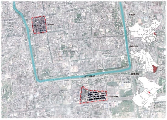 Daoqian is located in the ancient city (Figure 3). It is a low-rise, high-density residential area with an overall historical style (Table 2) and is a good example of the traditional urban morphology in the ancient city of Suzhou: