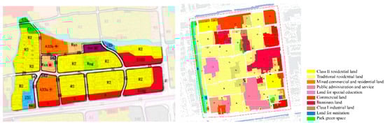An analysis of the main spatial characteristics of the two communities showed how variables such as FAR, plot ratio, and green space ratio differed in quantity and quality (Table 2).