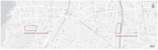 Maps of Hefang Street business block and Gongchen Bridge life block (according to Baidu map).