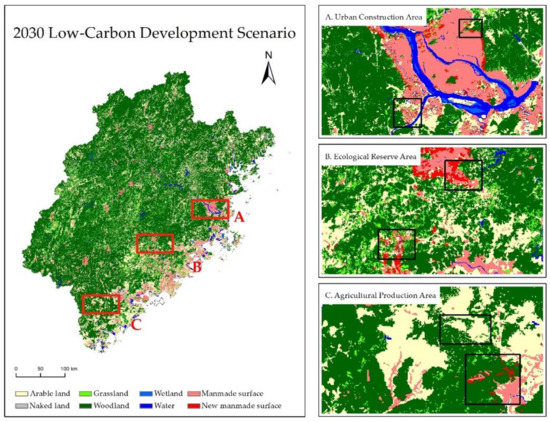 Land-use simulation map of Fujian Province under low-carbon development scenario in 2030.