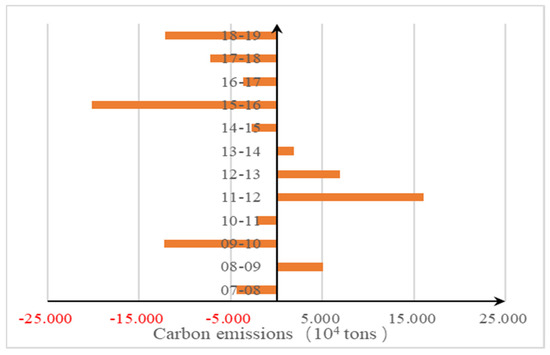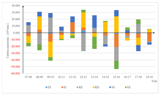 Figure 5 shows the CUE decomposition results of carbon emissions in logistics at the national level during 2007–2019, indicating that the land urbanization factors had important but different effects on the CUE of carbon emissions of logistics in China during 2007–2019.