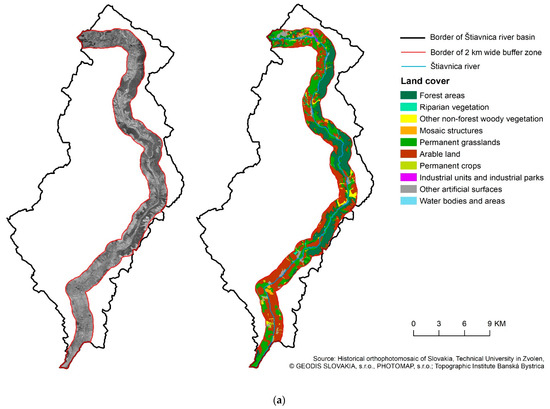 LULC maps for 1950 (a) and 2019 (b) of the Štiavnica River floodplain.