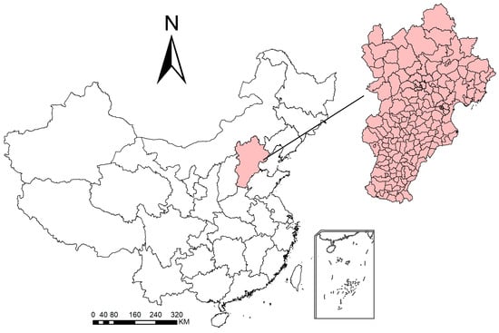 The land-use data in this study were from the Data Center of Resources and Environmental Sciences, Chinese Academy of Sciences, and their original data source came from the digital images of Landsat TM with a spatial resolution of 30 m. The interpretation products included six categories and 31 subcategories, with a classification error of less than 2 pixels. The data were in the shp format. The database used for this study was from the years 2000 and 2015. According to the research purpose, land use was divided into 12 categories, namely, paddy field, dry land, forested land, shrub forest, sparse woodland, other woodlands, high-coverage grassland, medium-coverage grassland, low-coverage grassland, water body, desert, and construction land. Social and economic statistics were obtained from Beijing Regional Economic Statistical Yearbook, Tianjin Statistical Yearbook, Hebei Economic Statistical Yearbook, and Hebei Rural Statistical Yearbook in corresponding years (2001 and 2016). All figures were processed in ArcGIS10.2.