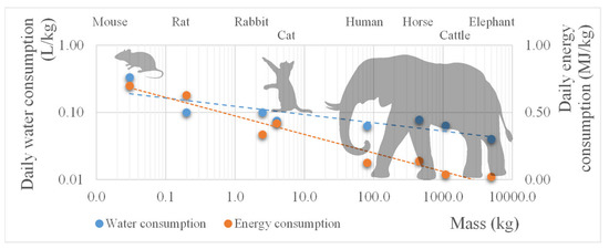 Clustering is a natural process that allows organisms to use natural resources more efficiently. Figure 9 shows that elephants require about 10,000 times less energy per mass than a mouse. Larger scales also increase the efficiency for mammals in terms of water consumption for survival.