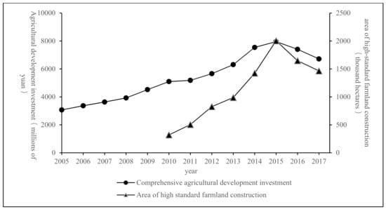 Figure 3. Agricultural investment and high-standard farmland construction area.