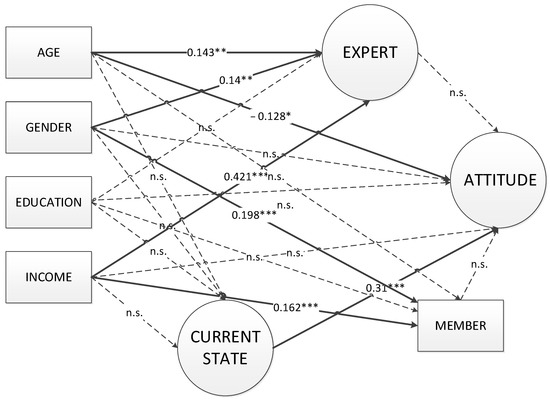 In the two following models, the mediator variables of “EXPERT” and “MEMBER” are added (see Figure 4 and Figure 5).