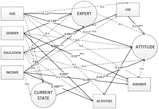 Moreover, the income through the “activity” variable also has an indirect effect on the citizens’ attitudes towards the paths.