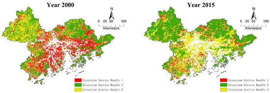 Distinct ecosystem service bundles in the Greater Bay Area in 2000 and 2015.