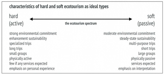 Characteristics of hard and soft ecotourism as ideal types (Source: compiled by the author based on [13]).