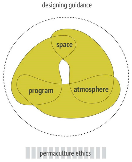 Relationships between nature and design are divided into three broad categories—nature in space, natural analogs, and nature of space. Each of these provides design patterns, which when applied, reduce stress, enhance cognitive reduction, and have positive impacts on emotions and moods. A biophilic design recreates a sensory relationship between nature and humans, in which the latter respects and appreciates the former. One philosophy that aims to design with nature in mind is permaculture. Permaculture refers to the close connection of the healing processes to the healthy balance of the surrounding environment. This balance is achieved through the harmonious interrelationship of humans and the earth. Permaculture ethics are covered by three broad maxims, which are care for the earth (its soils, forests, and water), care for humanity (self-care and care for community), and fair share, which sets limits to consumption and reproduction and redistributes surplus [34,35]. Accordingly, permacultural design follows methods that limit negative impacts and represents a paradigm shift towards zero or even positive impact footprint of the built environment, underlining the importance of sustainable land use, energy, building materials, water and waste generation [36,37,38,39,40,41,42,43,44,45,46].
