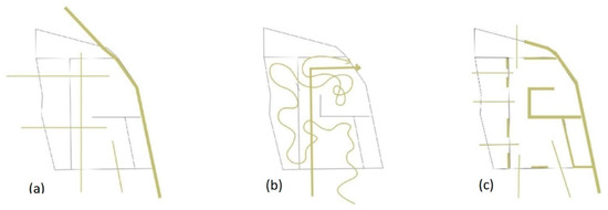 Topographically, the valleys and rivers of the landscape are essential for riverine forests, hay meadows, aquatic and riparian vegetation, and overall water supply. They also have an essential corridor function. These valleys can be used to create meaningful connections that save time, energy and building material using for example the natural flow of water through the valley, and to identify, collect and store local renewable energy resources [53]. In that way, the building philosophy can be carried on, creating self-sufficient buildings in a sustainable way (Figure 2b).