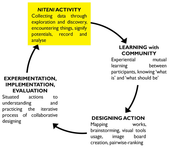 3.3. Design Process and Participatory Learning and Action through Niteni