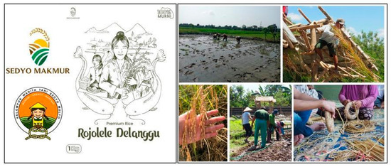 The use of ethnographic heritage (including folklore and iconic scenery) in marketing approaches that celebrate Sabrang village life and its traditions (rice, rituals, craft, nature, and people) has attracted more customers of community-made products. This approach was inspired by Japan, which has area-specific types of rice produce along with attractive visual images and aesthetics that reflect the significance of the producing regions, as well as other locations and products around the world. For example, in the case of Bulgaria, the valorization of yogurt as both a traditional, “typical” Bulgarian food and an evidence-based health product was facilitated by sophisticated marketing forces and mythmaking [53]. The annual increase in Wiwitan ritual attendees (beginning in 2020) in Sabrang village and the purchase of rice whose profits go directly to the farmers’ organizations are indicators of this expanding attractiveness of their community-made products. This was likely driven, in part, by the ways in which the packaging promoted an image of high-quality rice to consumers, aiding in the re-grounding of myths among the locals and consumers (and also influencing their visual aesthetics) and re-territorializing of their iconic identity (as the producers of Rojolele Delanggu), inspiring them, once again, to feel their attachment to the land and traditions and develop ethnographic images of the region and the rice farmers. This approach could be made more successful through official designation by the Indonesian government jurisdictions, as, for example, in the case of the Chinese village of Nalu, where the government has promoted the traditional village community life and products [49]. Sabrang could follow a similar path, since their marketing activities have attracted the interest of a governmental agency, and there may be a potential to authenticate Rojolele Delanggu rice as a traditional regional product (Sabrang, Delanggu).