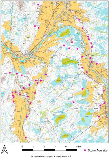 However, from the perspective of current research and GIS analysis, the Register of Ancient Monuments has many problems. The level of information and site descriptions vary. In some cases, it may mention pottery type or, for example, dating, but some sites only receive brief descriptions without any important accompanying details. Information about the sites has been collected for decades, and some descriptions or locations can be based on very old surveys or small-scale excavations. The user must evaluate data reliability for each individual site, and thus, forming a reliable overall picture is difficult. A lack of proper classifications or keywords makes the register difficult to use with GIS programs. The points or polygons have age classes, such as dating = “stone age” and type = “settlement site,” but they fail to provide any additional search options or keywords; hence, the few existing options do not yield a good result when trying to find more specific information on a site other than just dating or type. Additionally, sites can have similar names, so the only reliable identifier is the individual site number. However, if a user wants to list multiple sites, as in this study, searching each site on a case-by-case basis, using only the site number, is a slow process.