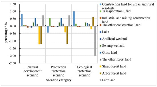 Percentage of predicted land−use changes under different scenarios.