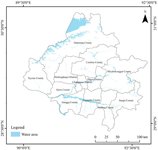 The Lhasa metropolitan area is affected by the plateau monsoon semiarid climate and subsidence airflow, with sunny weather throughout the year and over 3000 h of sunshine. Affected by high altitude, sunny weather, and underdeveloped economic conditions, the land use and carbon emissions of the Lhasa metropolitan area also show unique characteristics that are different from those in midwest valley cities and eastern plains cities in China. According to the level of economic development and population, we chose relatively developed urban areas on the Qinghai–Tibet Plateau for the study. The Lhasa metropolitan area in this paper covers 3 districts and 9 counties, that is, Chengguan District, Dagze District, Doilungdeqen District, Damxung County, Gongga County, Maizhokunggar County, Nedong County, Nyemo County, Quxu County, Sangri County, Linzhou County, and Ngagzha County (see Figure 1).