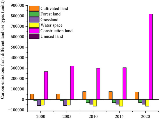 Figure 4. The carbon emissions of different land use types in Lhasa metropolitan area.