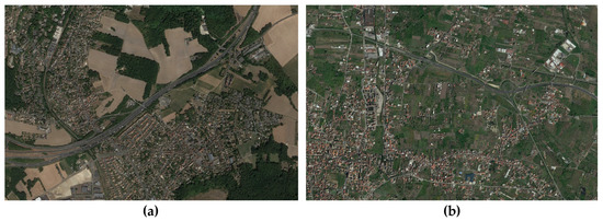 In this context, it is essential to understand the state of settlements and the main trends in urbanization and demographic variations. The low-density urban growth known as “sprawl” [19,20] is a common phenomenon in Europe that, in Italy, assumes the characteristics of extreme dispersion, taking the name of “sprinkling” [21]. Compared to sprawl (which is based on urban systems designed through zooning), this settlement dynamic develops spontaneously, following different intensities based on the orography and often in the absence of urban planning. Sprinkling is characterized by aggregates of highly variable dimensions that generate low-density hybrid landscapes in rural areas, whose characteristics mix with those of urban areas [22,23,24] (Figure 1). This configuration is the result of planning processes of the 1960s and 1970s, which led, on the one hand, to the creation of new zone plans on the peripheral areas and to densification, and on the other, to the construction of new residential complexes in the countryside. This dynamic has led to the proliferation of settlements in a widespread form on the margins of large urban centers, influencing the growth of periurban fringes and the transposition of urban models to the countryside [25]. Therefore, on the one hand, there is the presence of consolidated urban forms with centrality roles, and on the other, discontinuous and low-density suburban or periurban settlements have been formed, with marginal dimensions and roles that limit the triggering of centrality effects [26]. This fraying of the margins of urban areas makes the delimitation of the margins between city and countryside complex and limits the definition of a univocal criterion for circumscribing them [27]. It is, therefore, necessary to analyze the urban landscape on a national scale in terms of the urban–rural continuum, overcoming the urban–rural dichotomy [28,29,30].