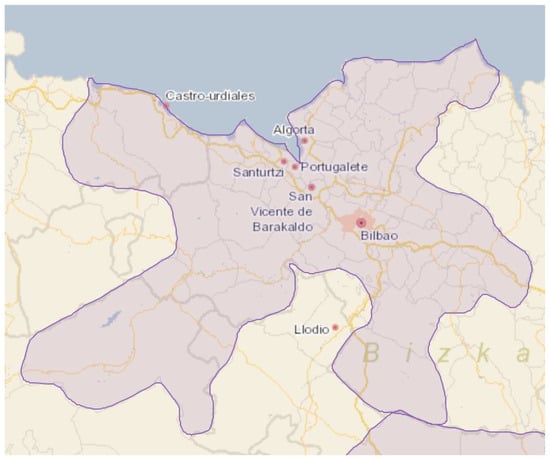 According to the study of the National Institute of Statistics (INE) on functional urban areas3, Bilbao covers a large part of the territories that make up the Marina Oriental of Cantabria, as we will see below (Figure 9). The metropolitan area of Bilbao is an urban space that covers an area of more than 300 square kilometers, made up of about thirty municipalities in more than one million people live. Within this space, there is the presence of municipalities belonging to the Marina Oriental, such as Castro Urdiales and Guriezo, among others, which are today functionally integrated completely into the metropolitan area of Bilbao [18]. It is metropolitan growth that has exceeded administrative limits and has grown enormously, exceeding previous expectations and esti-mates.