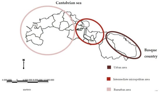 It is also important, in this introduction, to delimit the area of study that will be worked on and has already been cited previously, the Marina Oriental of the Autonomous Community of Cantabria, which, on a small scale, is a paradigmatic example of this process. The various municipalities that make up this territory have experienced remarkable growth dynamics because of the decentralization and dispersion of the great city of Bilbao, located in the Basque Autonomous Community, and, to a lesser extent, of the regional capital, Santander. A process, therefore, that has occurred above the political–administrative limits, which do not seem to have affected the functional configuration of this space, but at the internal level of the administrations, both local and autonomous, specifically in the matter of urbanism and endowments [17].