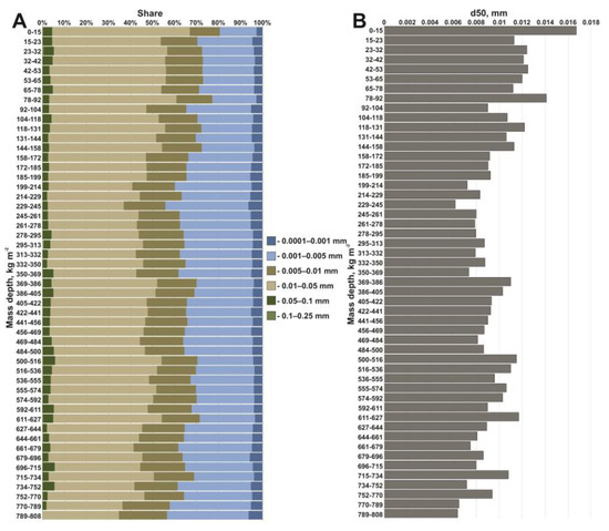 Runoff-forming rainfall, which potentially leads to washouts and occurs during the warm season, is subject to much greater fluctuations, according to the weather station in Plavsk for the period of 1986–2018. The total precipitation from year to year could differ by more than two times (Figure 7A). At the same time, more than half of the rainfall falls on the 12 wettest days (Figure 7B), when washouts are most likely to form because of the heavy rains.
