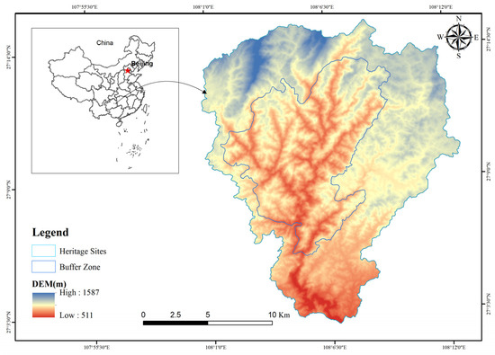 Karst is one of the most remarkable landscapes in the world, mainly consisting of special topography and associated ecosystems developed on carbonate rocks, characterized by vadose flows, caves, dark rivers, canyons, depressions and conical and towering peaks [7]. China is one of the countries with the most extensive karst distribution in the world, with 1.25 million km2 of carbonate rock outcrops [8] accounting for 13% of the total land area of China. The “South China Karst” is a series of heritage sites, the first phase of which consists of three constituent sites: Shilin Karst (Yunnan), Libo Karst (Guizhou) and Wulong Karst (Chongqing), which were inscribed on the World Heritage List in 2007 for meeting World Heritage criteria (vii) and (viii) [9]. The second phase of heritage sites consists of Guilin Karst (Guangxi), Shibing Karst (Guizhou) and Jinfo Mountain Karst (Chongqing), which were inscribed on the World Heritage List in 2014 for meeting World Heritage criteria (vii) and (viii). As karst areas are characterized by soil vulnerability, hydrological vulnerability, vegetation vulnerability and human vulnerability [10], it is necessary to monitor them regularly and to protect the sustainability of karst WNHs.