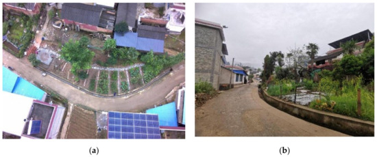 The sample farmyards before rebuilding and beatification in Hongtang Village. (a) The farmyard site; (b) the surrounding environment. Source: the authors, taken in August 2022.