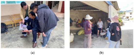 Planners consulting with the local villagers on rebuilding their surrounding environment. (a) Villagers sharing their opinions with the planners on the site design; (b) Villagers giving suggestions on the industrial revitalization. Source: the authors, taken in August 2022.