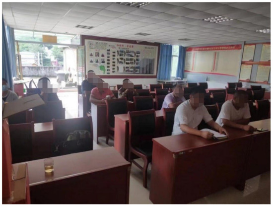 The planning team further promotes the improvement of residents’ participation ability by influencing the participants’ thoughts, value judgment, and behavior mode during the construction process [84]. The impact of planning intervention on villagers is embodied in the change of attitude towards rural development, the improvement of active problem-solving ability, and the deepening of participation in village development. Before the intervention of external forces, villagers failed to form a systematic plan for rural construction and public affairs development. In the early stage of the research team’s settlement, most of the villagers had little understanding of the planning scheme. They even showed an “outsider” attitude toward the future development of Hongtang Village, thinking that, “you are experts, you can do it.” After a series of lively practices, such as the planning team’s household interviews (Figure 4), easy-to-understand popular science, a comprehensive explanation of Hongtang Village (Figure 5), and the “Hongtang in My Mind” painting activity (Figure 6), the villagers h a better understanding of the countryside and its development environment.