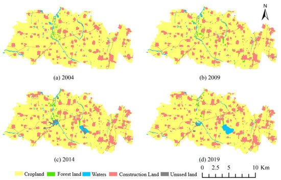 Distribution of land use landscape types in Zhaogu mining area, 2004–2019.