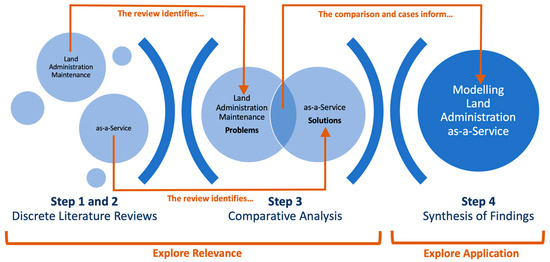 After this introduction section (Section 1), an overview of the applied methodology is provided in Section 2. A 4-step research design is described. It consists of two separate literature reviews (one on the ‘land administration maintenance’ problem and the other on the aaS solution); a comparison of the outputs of these reviews; and a final fusion or synthesis phase. The results of each step are presented independently in Section 3, Section 4, Section 5, Section 6 and Section 7. An overall preliminary understanding of the relevance and utility of aaS is arrived at in Section 8, the conclusion section, which provides an overarching summary and suggested areas for further work, for both practical and research domains.