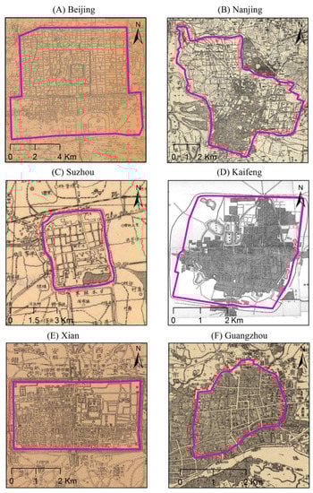 - He, F.; Ge, Q.; Zheng, J. Reckoning the Areas of Urban Land Use and Their Comparison in the Qing Dynasty in China. Acta Geogr. Sin. 2002, 57, 709–716. [Google Scholar]