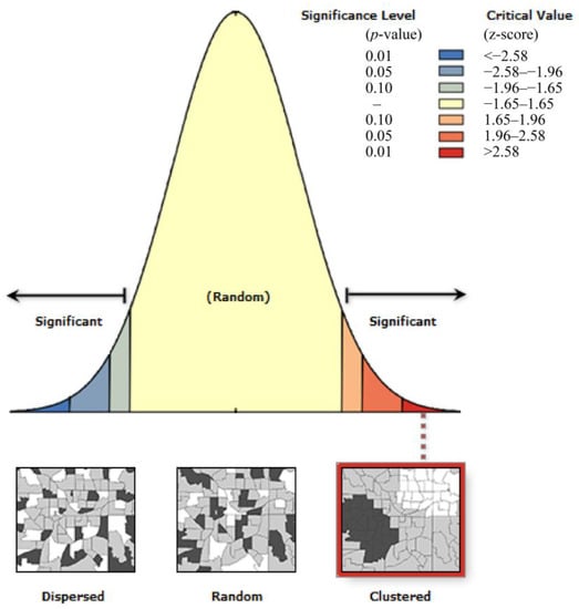 - Getis, A.; Ord, J.K. The analysis of spatial association by use of distance statistics. Geogr. Anal. 1992, 24, 189–206. [Google Scholar] [CrossRef]